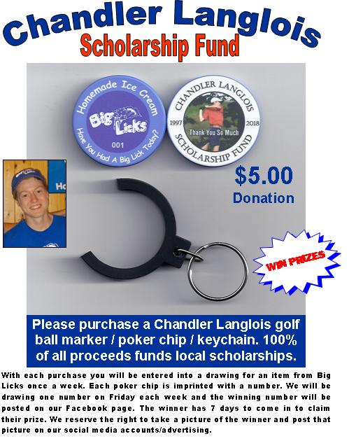 Please help us support the Chandler Langlois Scholarship Fund by donating at GoFundMe or by purchasing one of our Poker Chip / Ball Markers.ย Thank You So Much.